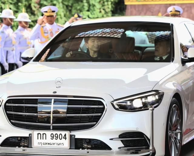 从港口前往机场的路上,是苏提达亲自开车载着泰王的,或许是想要通过这样的方式表现夫妻和睦吧。